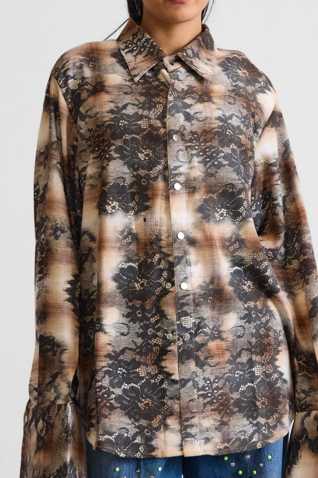 LACE ON PLAID OVER SHIRT