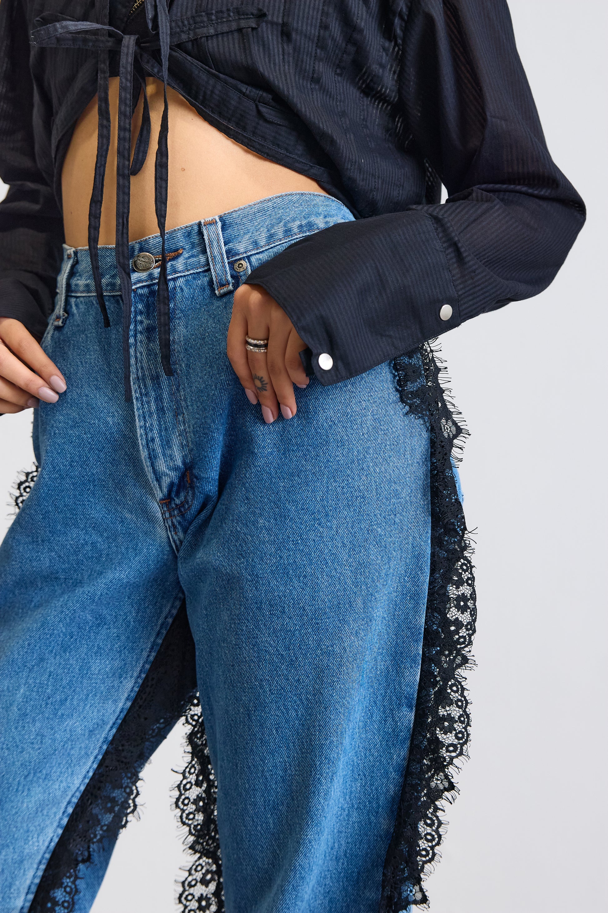 REWORKED HARLEY DENIMS W LACE DETAIL